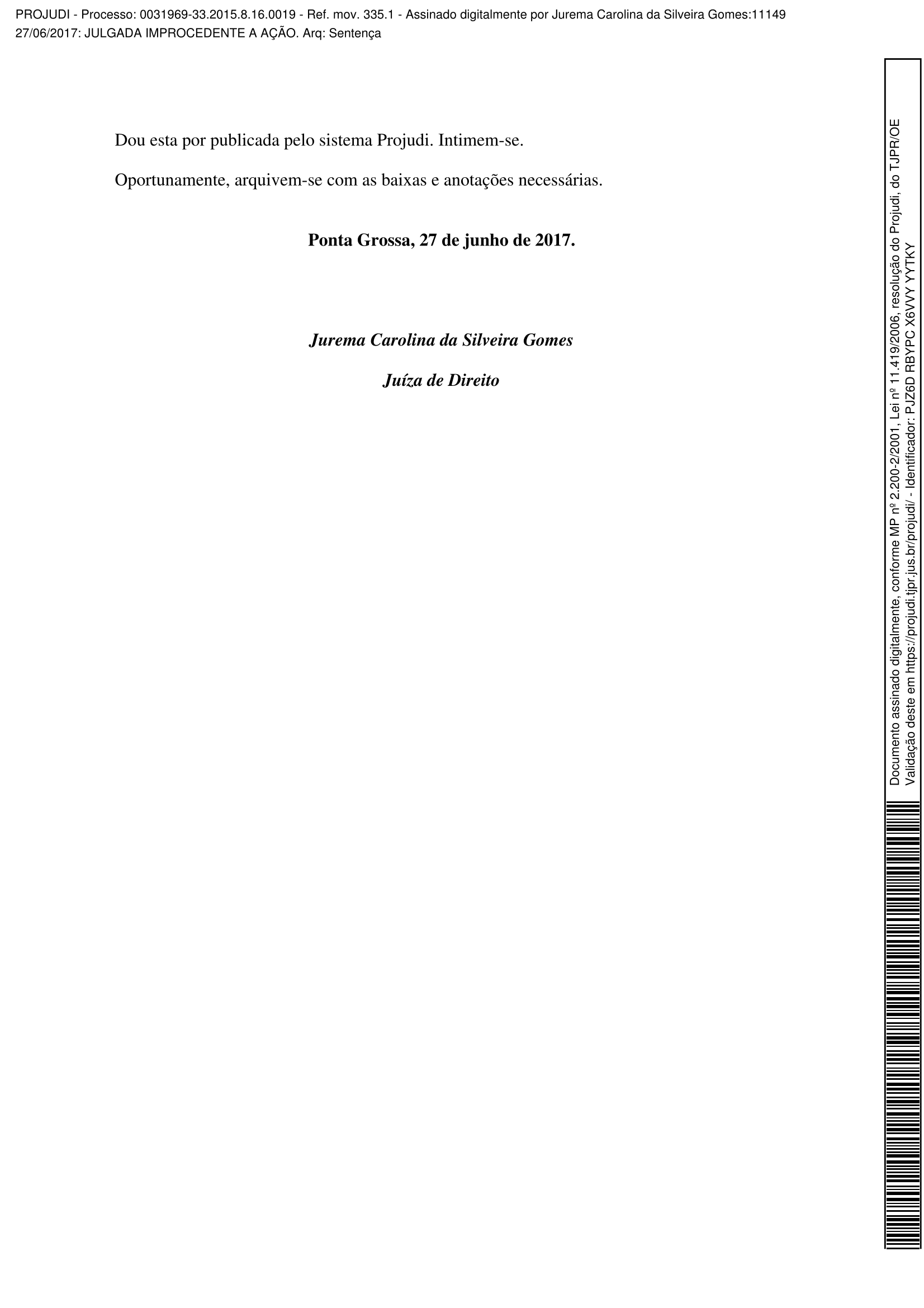 Veja o processo com a sentença da juíza Jurema Carolina da Silveira Gomes: